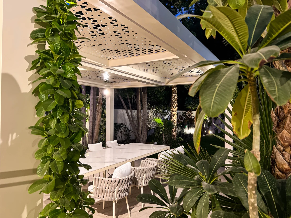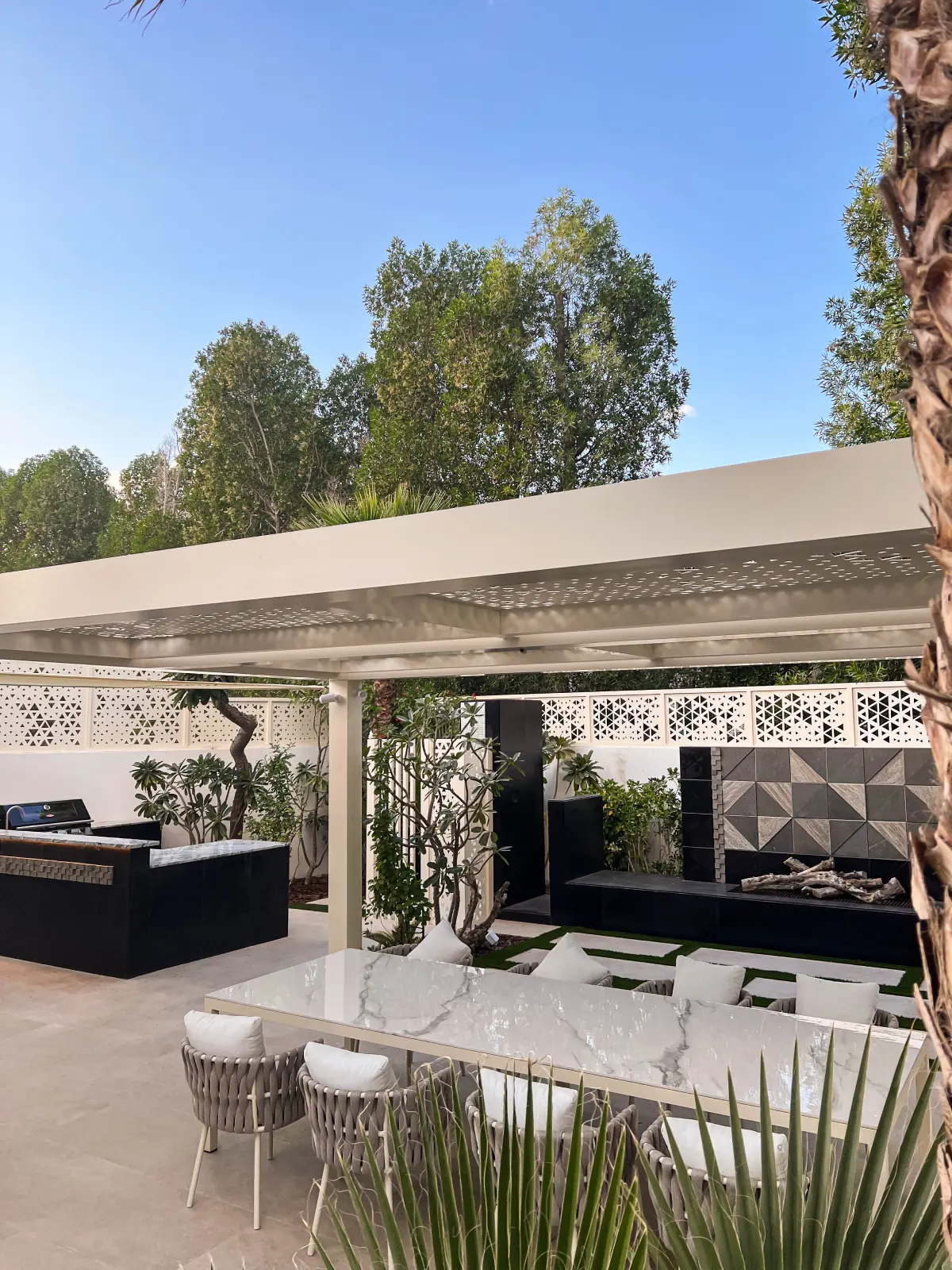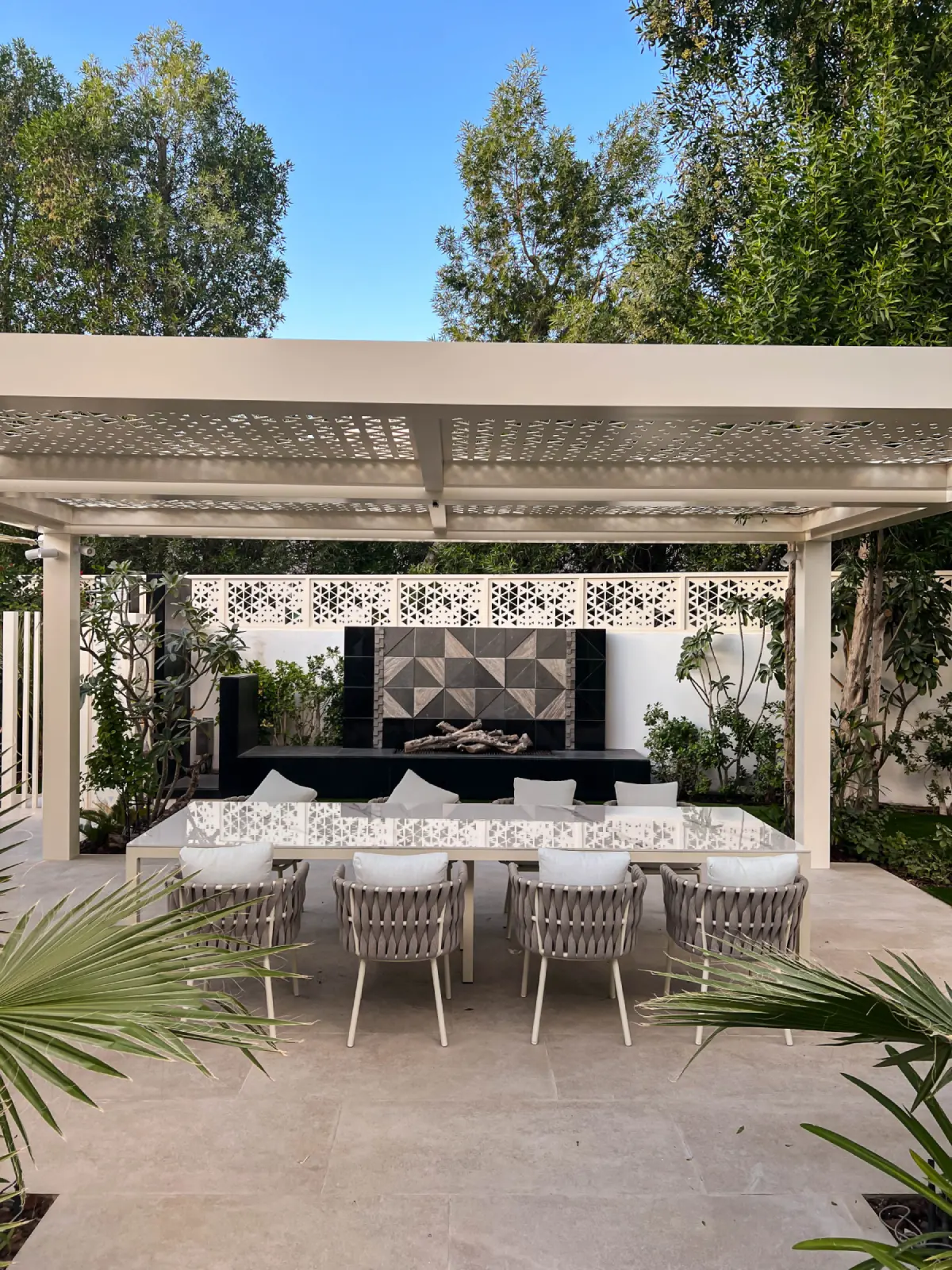 Pergolas, gazebos, and outdoor features that define functional spaces.